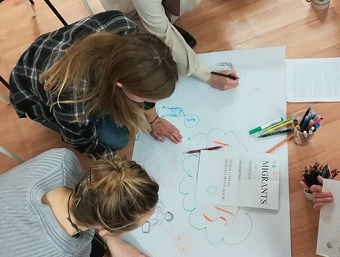 Professores e educadores receberam dicas práticas sobre como conduzir workshops e aulas, incluindo em disciplinas curriculares como: geografia, educação física e artes, em grupos constituídos por pessoas (alunos, formandos) com histórico de migração.